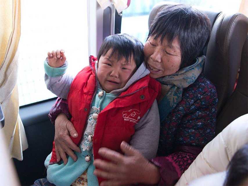 圖五:剛剛坐定,小孫女跟爺爺說再見的時候忍不住哭了……