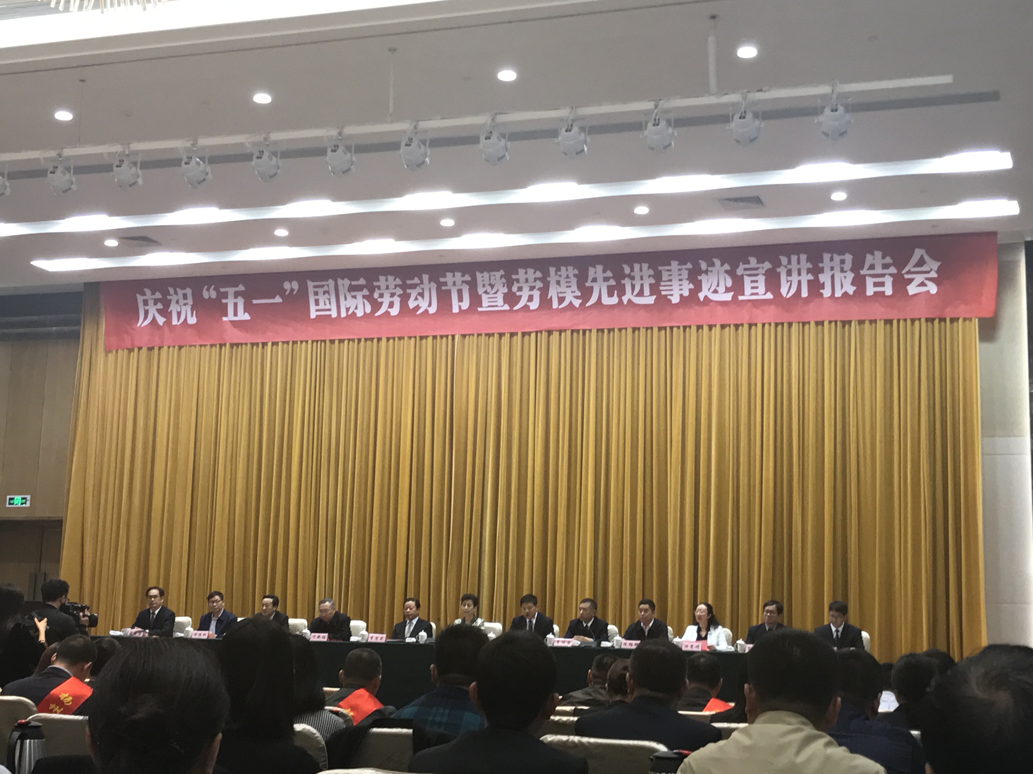4月27日下午,市委、市政府在揚州明月湖酒店三樓會議廳舉行慶祝“五一”國際勞動節(jié)暨勞模先進事跡宣講報告會,揚州各縣(市、區(qū))總工會、功能區(qū)工會和市直各產(chǎn)業(yè)工會的工會主席,受表彰的2018年全國、省、市五一勞動獎?wù)潞凸と讼蠕h號獲得者代表及職工代表近300人參加會議。會上,揚汽集團修理廠職工劉東、汽車站服務(wù)班分別獲頒“揚州市五一勞動獎?wù)?rdquo;、“揚州市工人先鋒號”榮譽稱號。