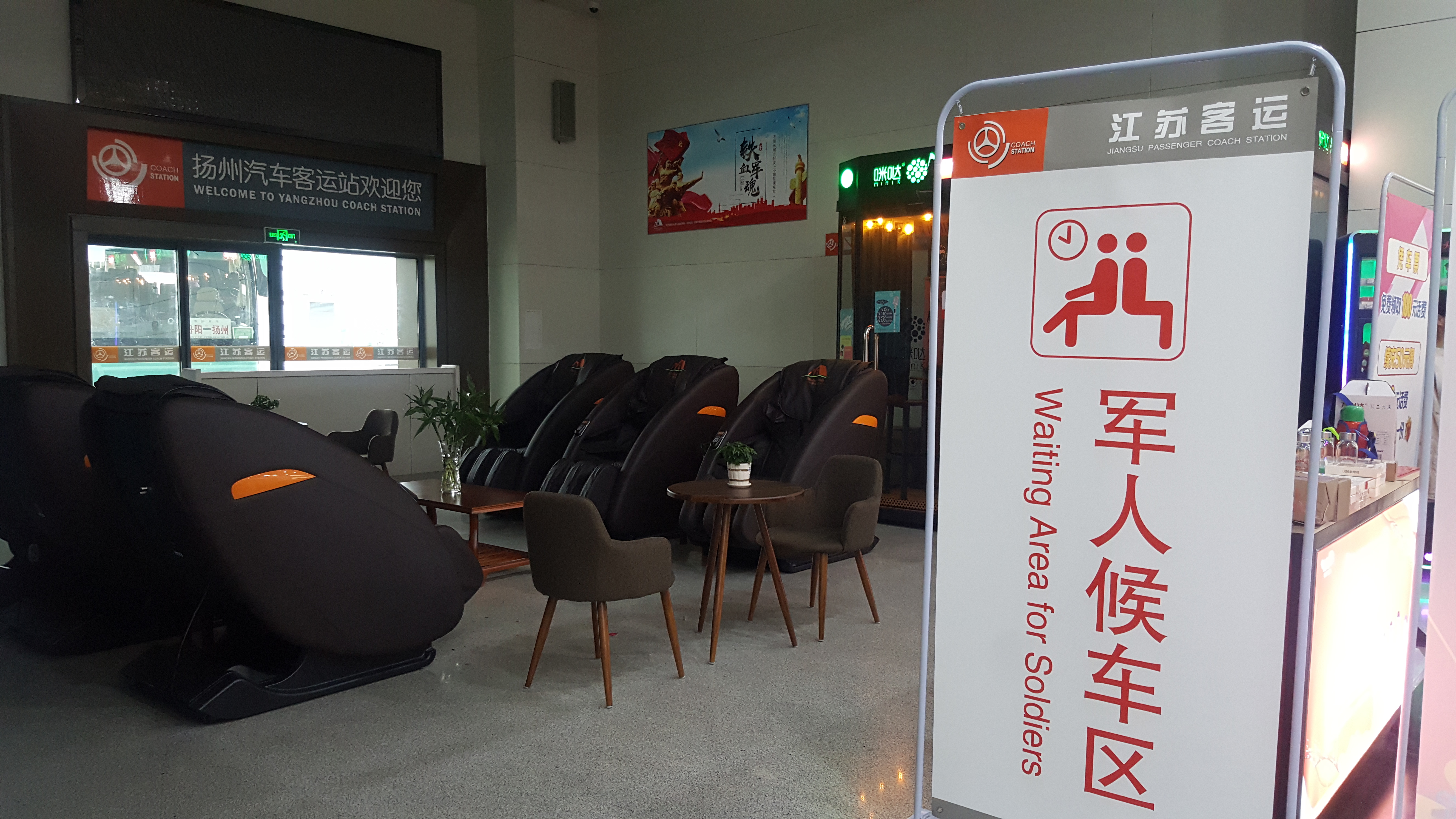 為進(jìn)一步保障軍人依法優(yōu)先權(quán)利,將軍人優(yōu)先政策切實(shí)落到實(shí)處,春運(yùn)期間揚(yáng)州汽車站結(jié)合候車廳布局,進(jìn)一步調(diào)整挖掘站區(qū)資源,在大廳南側(cè)設(shè)置了面積約為40平方米的軍人候車專區(qū),供軍人候車使用,并制定和實(shí)施軍人優(yōu)先的服務(wù)工作措施。今早,已有多位過往軍人旅客體驗(yàn)了專屬候車區(qū),他們表示非常感動(dòng)。