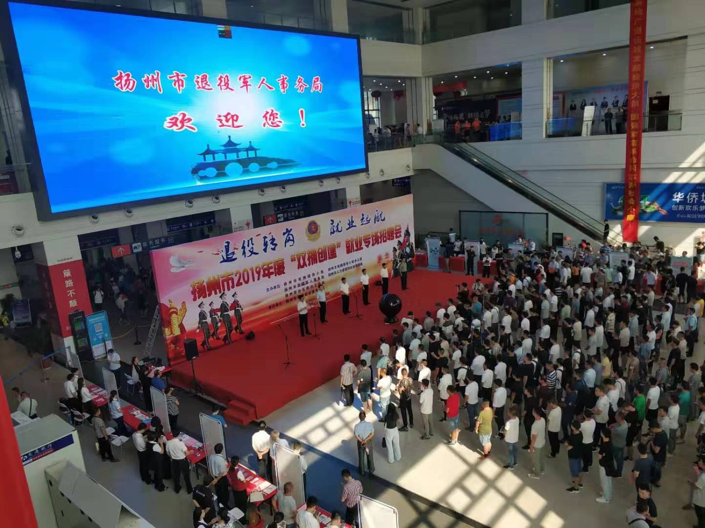 8月17日上午,揚州市2019年度“雙擁創(chuàng)建”就業(yè)專場招聘會在揚州西部客運樞紐揚州汽車站一樓大廳舉辦。會場設置50多個招聘席位,計劃安排1500個就業(yè)崗位,1200余名退役軍人及隨軍家屬參加現場招聘。招聘活動由揚州市雙擁領導小組、揚州市退役軍人事務局、揚州軍分區(qū)、揚州市人社局聯合主辦,旨在拓寬退役軍人就業(yè)渠道,為退役軍人和企業(yè)之間搭建起互通橋梁。