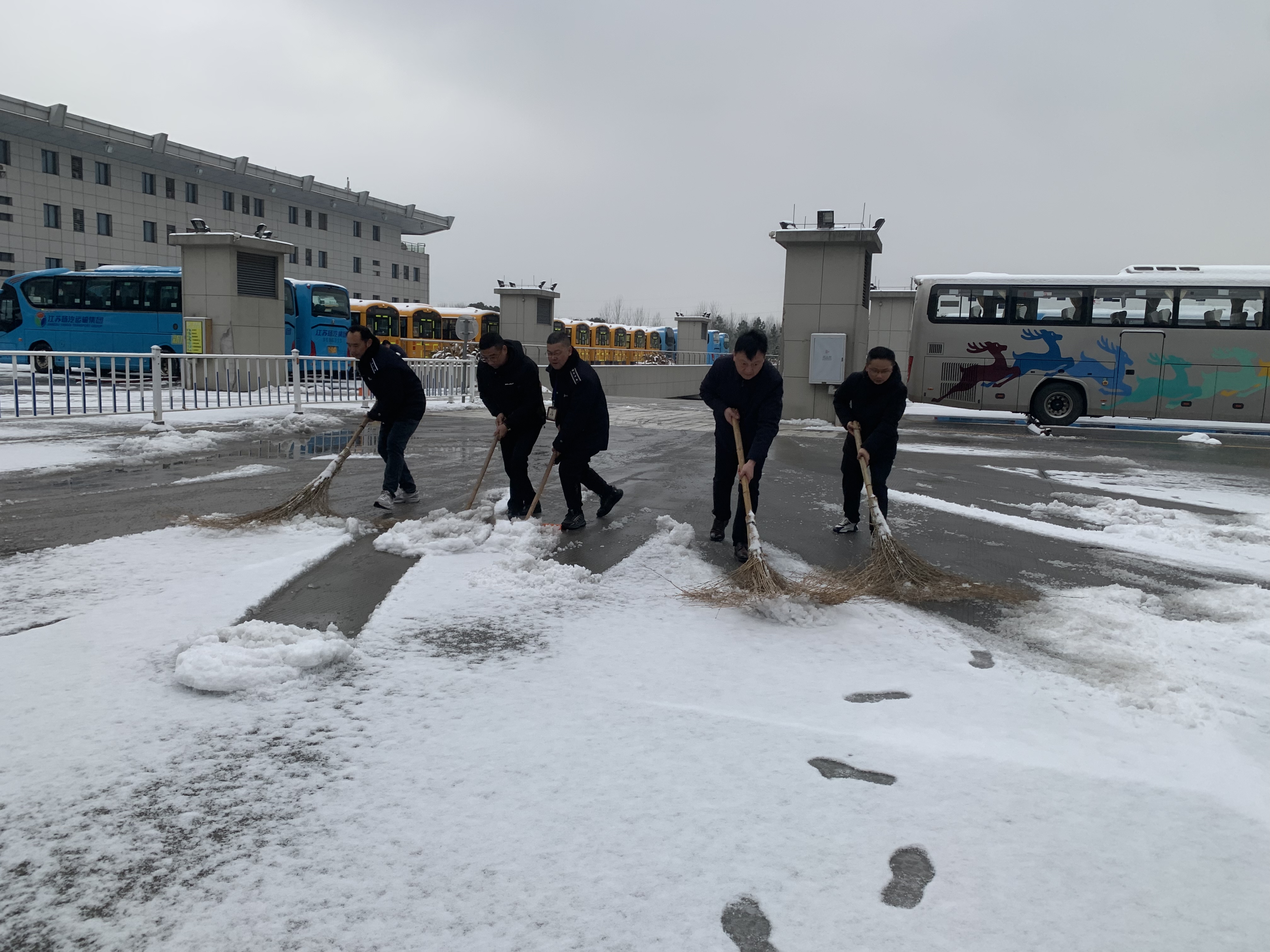 破冰除雪,安全出行。揚(yáng)汽集團(tuán)總經(jīng)理劉俊帶領(lǐng)應(yīng)急值班值守和安管人員開展雪地清掃工作,進(jìn)一步落實(shí)落細(xì)各項(xiàng)應(yīng)急保障措施,現(xiàn)場(chǎng)叮囑相關(guān)負(fù)責(zé)人要時(shí)刻關(guān)注天氣情況和道路狀況,科學(xué)合理安排班次,確保旅客出行需求。
